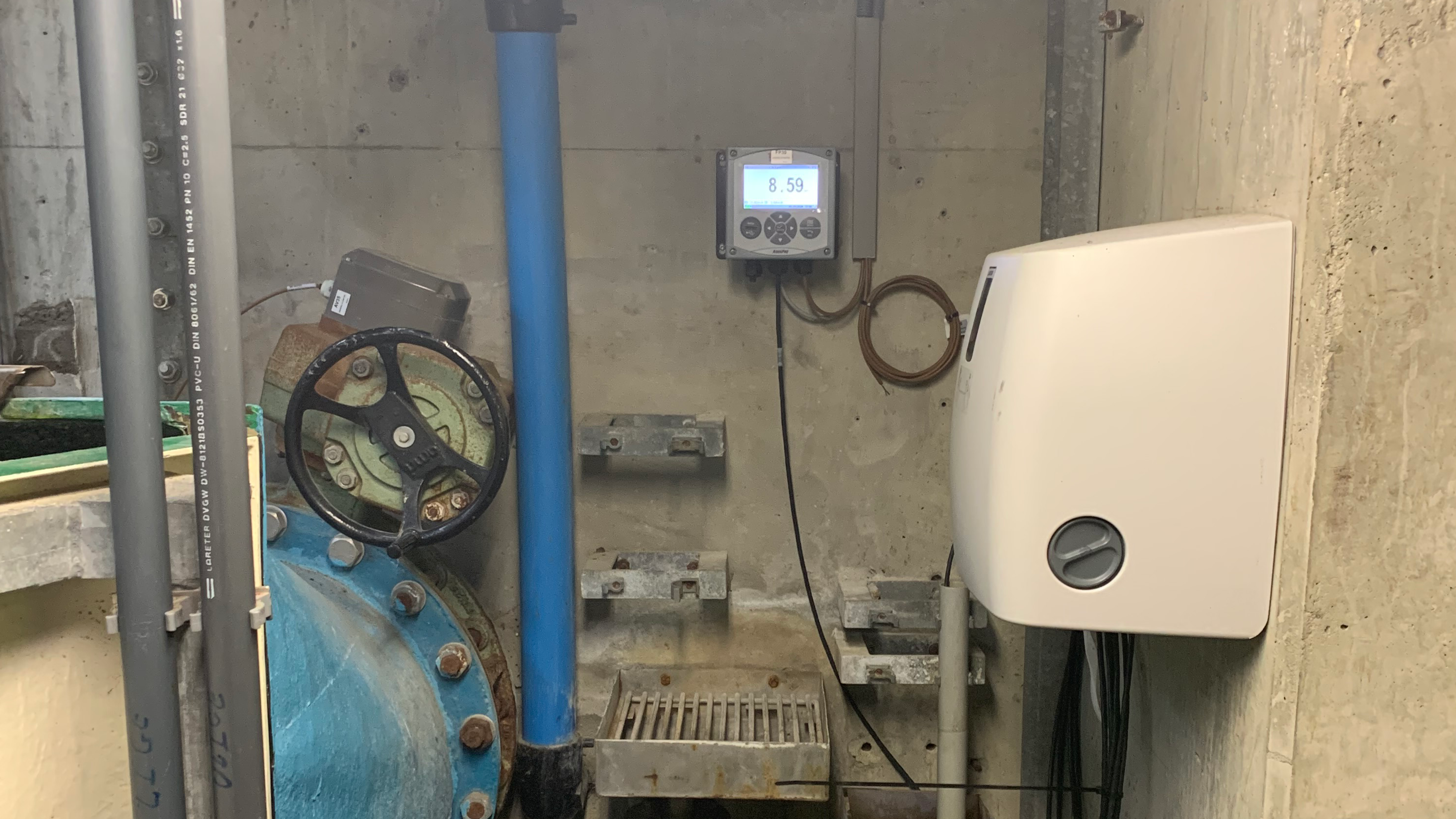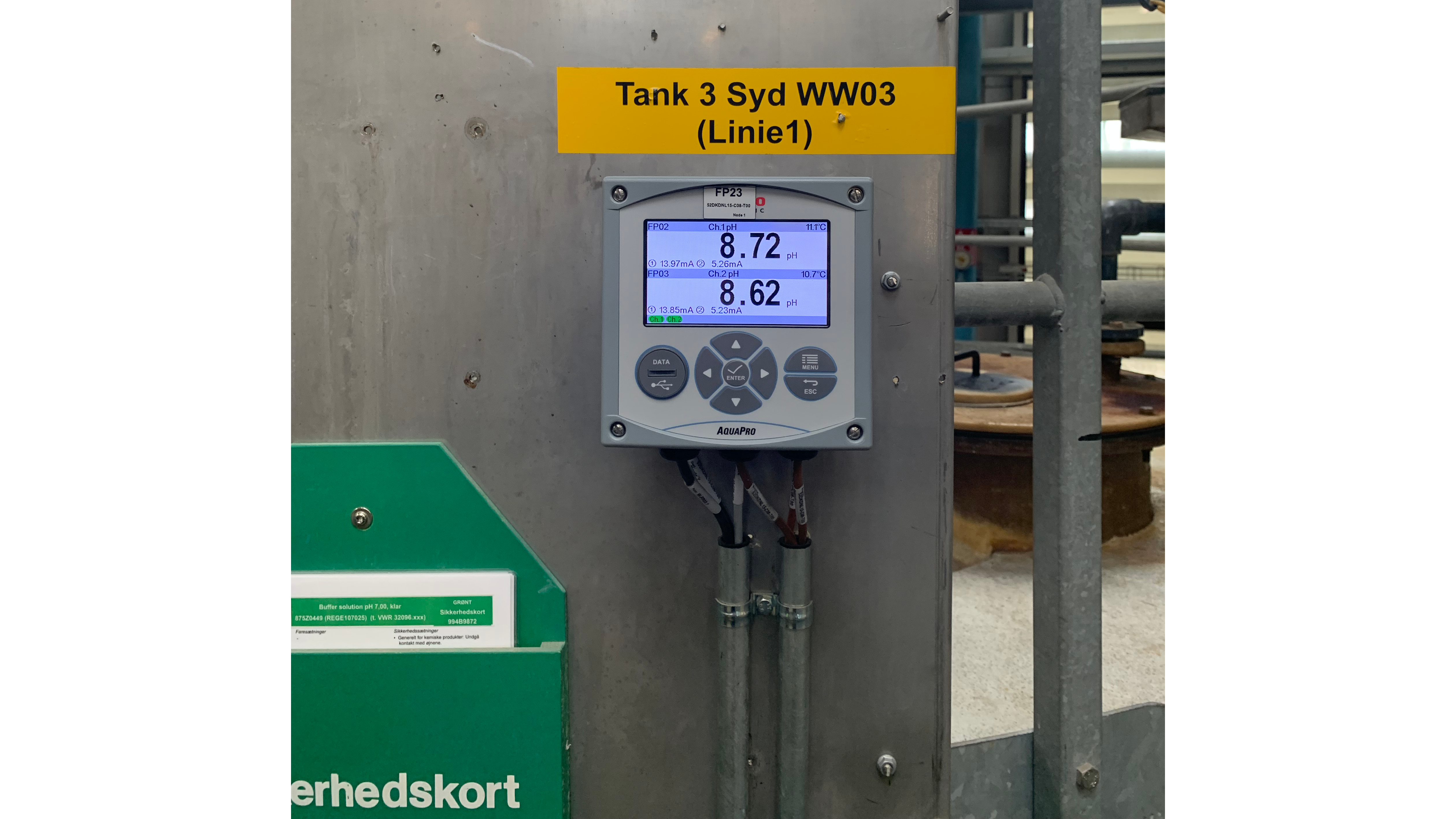 Anlægget består af to parallelle linjer, hvor der på hver linje måles pH to steder. Derfor er der på hver linje monteret en Aquapro Multi input-transmitter fra Thermo Fisher Scientific og to pH-sensorer (Orion pHR Process Ross Electrode). Derudover måler Danfoss pH ved udløb på anlægget, hvor samme transmitter type og pH-føler anvendes.