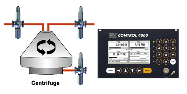 En turbiditetsmåler kan styre centrifugen, så der kun udledes ganske lidt, men til gengæld separeres med optimal hastighed, med en deraf større gennemgang / udnyttelse af centrifugen.