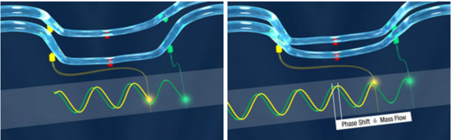 Source: Illustrations for the "Coriolis Mass Flow Measurement" from Yokogawas video "Coriolis Flow Meter (Principle of operation)"