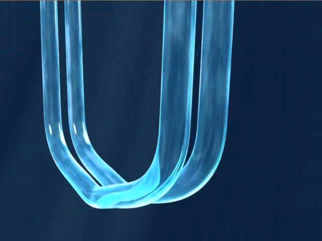 The picture (below ) shows the same situation as above, the difference being this one illustrates a flow through the tubes. Notice how the tubes are twisted at the corners when they move from side to side. It is due to the mass resisting the acceleration and deceleration going in and out of the tube.