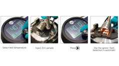 The Setaflash Series 3e closed cup flash point tester can be operated in 4 easy steps. Below you see the operator sequence.