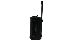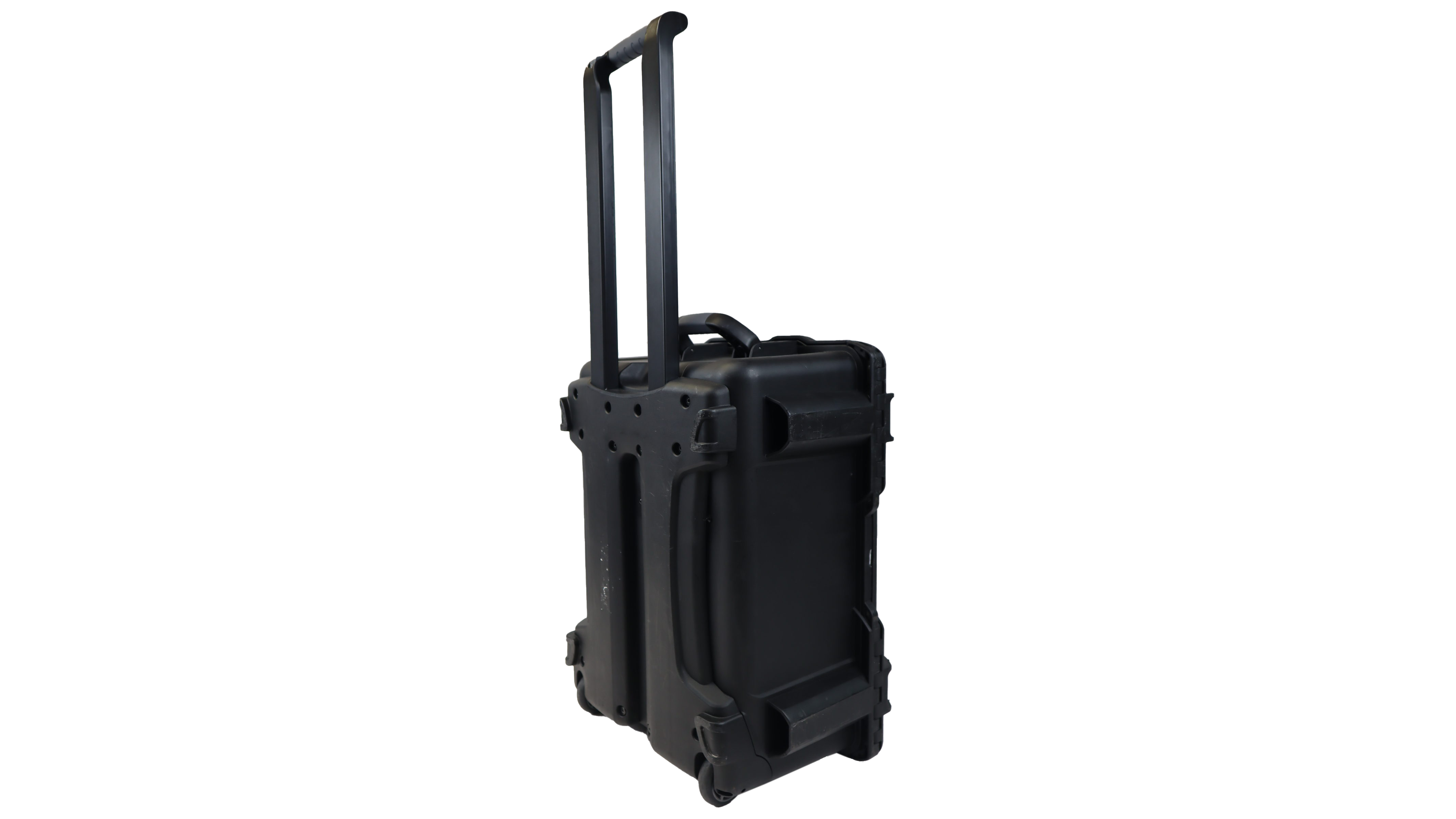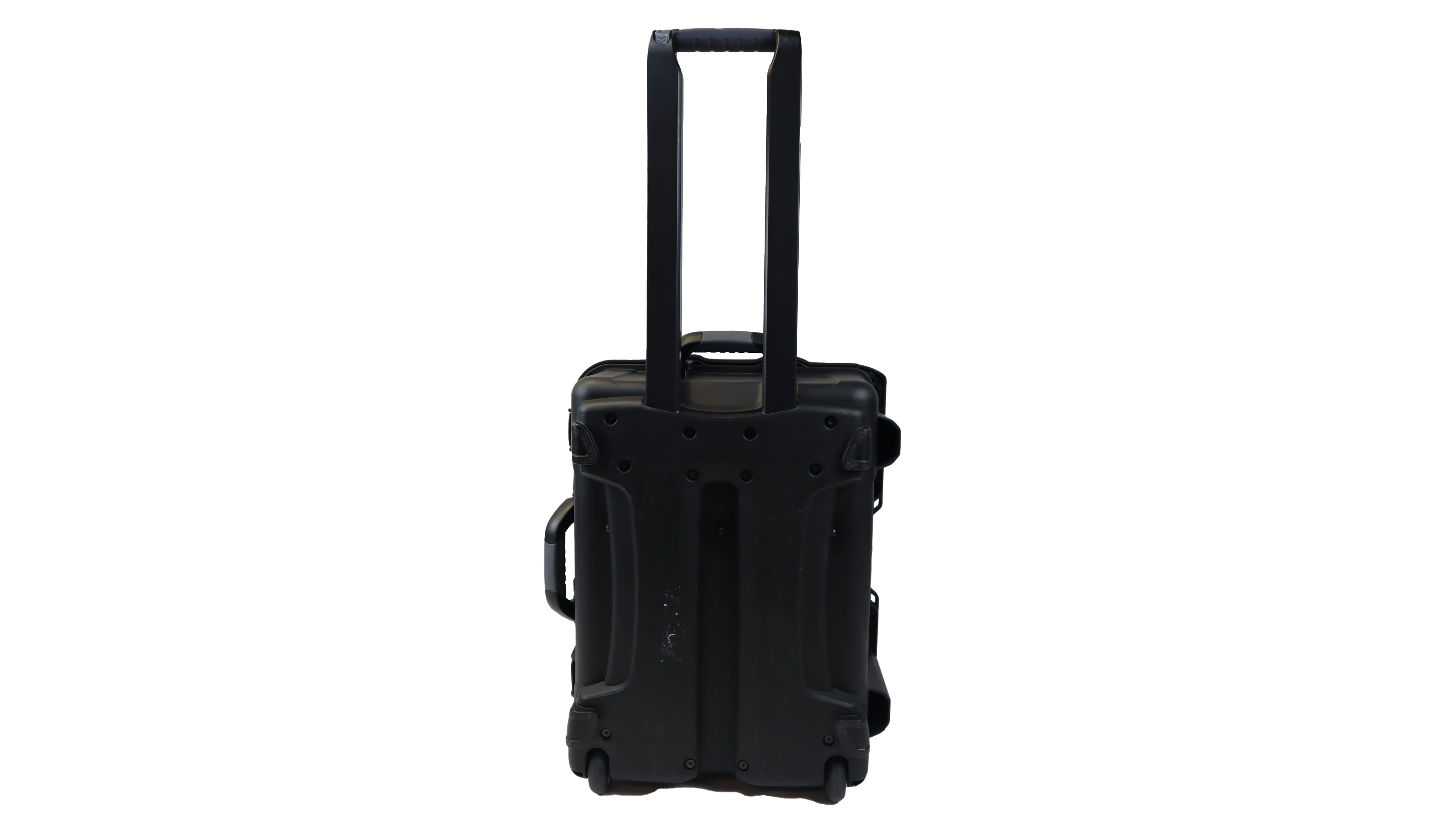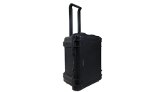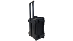 The carrying case houses all system components. Stationary components are integrated into the case and extra storage space is included for easy transport of accessory items. Includes retractable handle and wheels. Dimensions 12″ x 18.5″ x 22.5″ / 30.5 x 48 x 57 cm (D x W x L) .