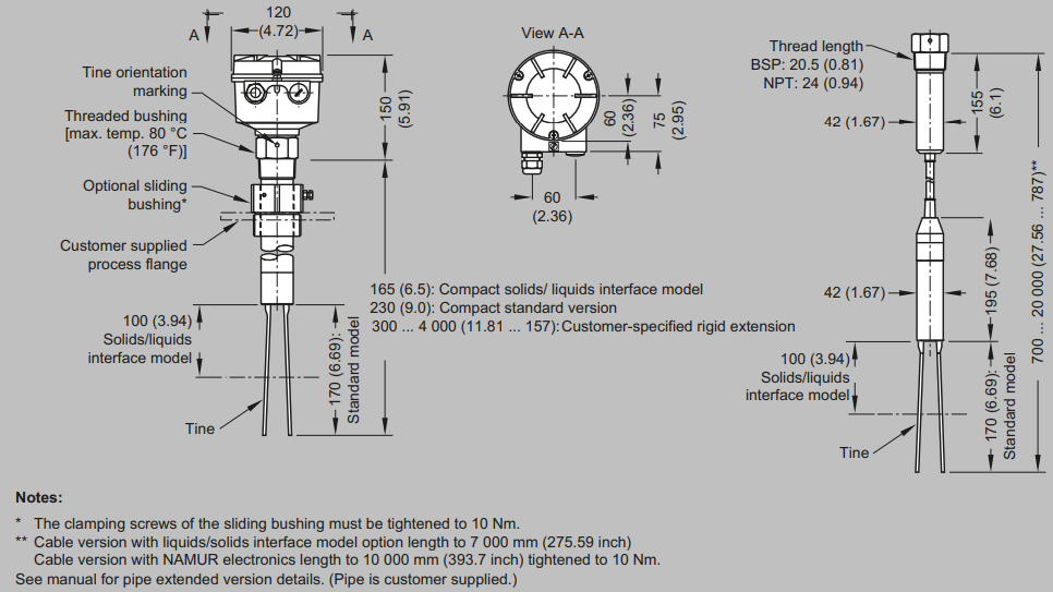 The SITRANS LVS200 from Siemens is used as a universal level switch for solids and interface measurement. It operates at process temperatures between -40...150 °C and pressures up to 10 bar. It is available with rod or cable extensions up to 4 and 20 meters, respectively.