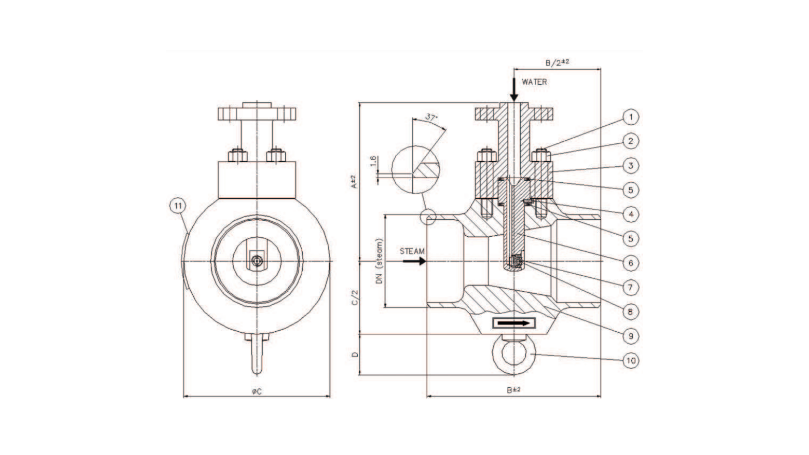 The VARIvent desuperheater is designed for effective steam temperature reduction using venturi-shaped nozzles that ensure rapid and efficient atomization of water. It is ideal for moderate load conditions and applications where accurate temperature control is essential.