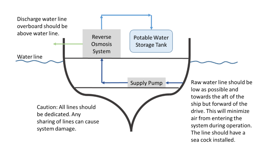 Potable water is necessary to "flush" or "store" the system, a process automated by the optional Fresh Water Flush feature, safeguarding both the R.O. membrane and system.