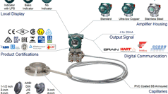Anvendes til trykmåling ved væsker, gas og damp, kan endvidere bruges til applikationer hvor der skal måles væske-niveau og eller udføres densitetsberegninger.