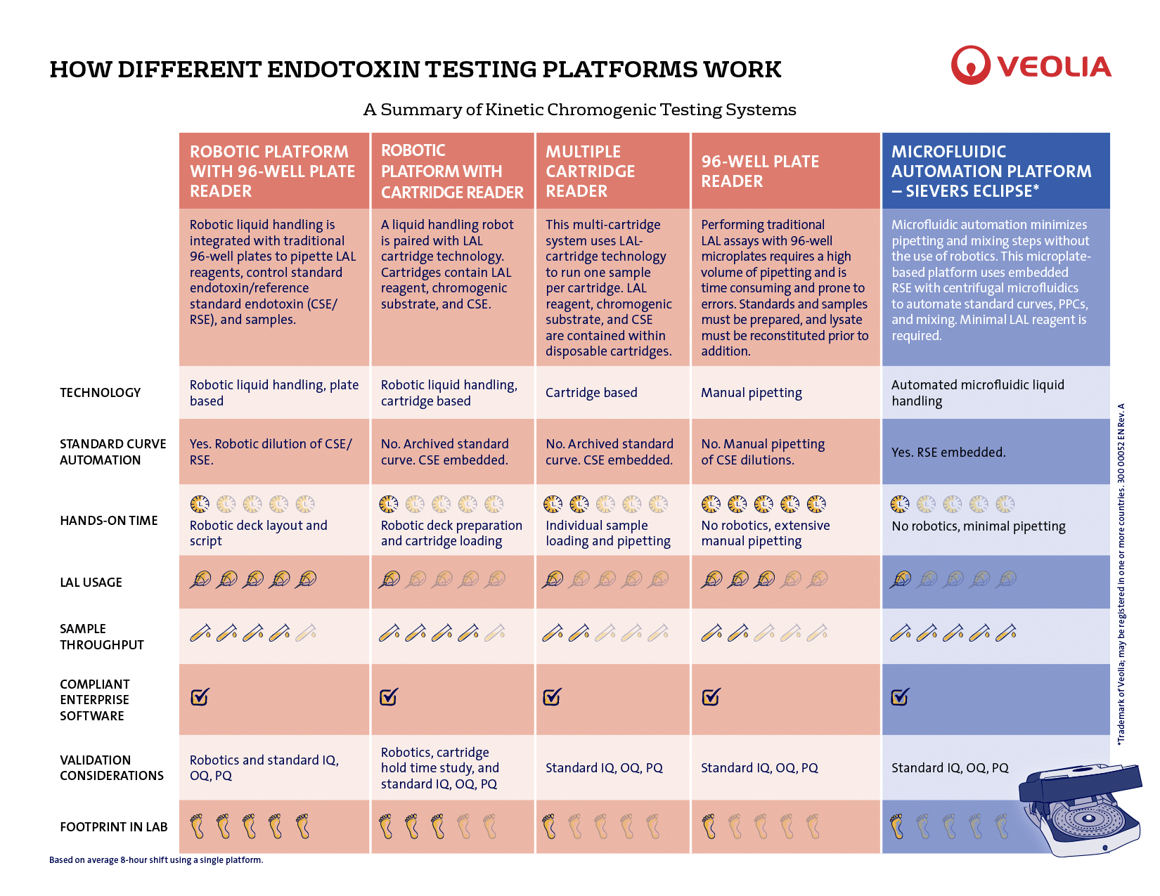 Der findes flere forskellige typer af kinetiske kromatografiske testsystemer. På denne infograf kan du se sammenligningen mellem de forskellige typer af disse sammen med Eclipse Bakteriel Endotoksikn Test (BET) platformen.