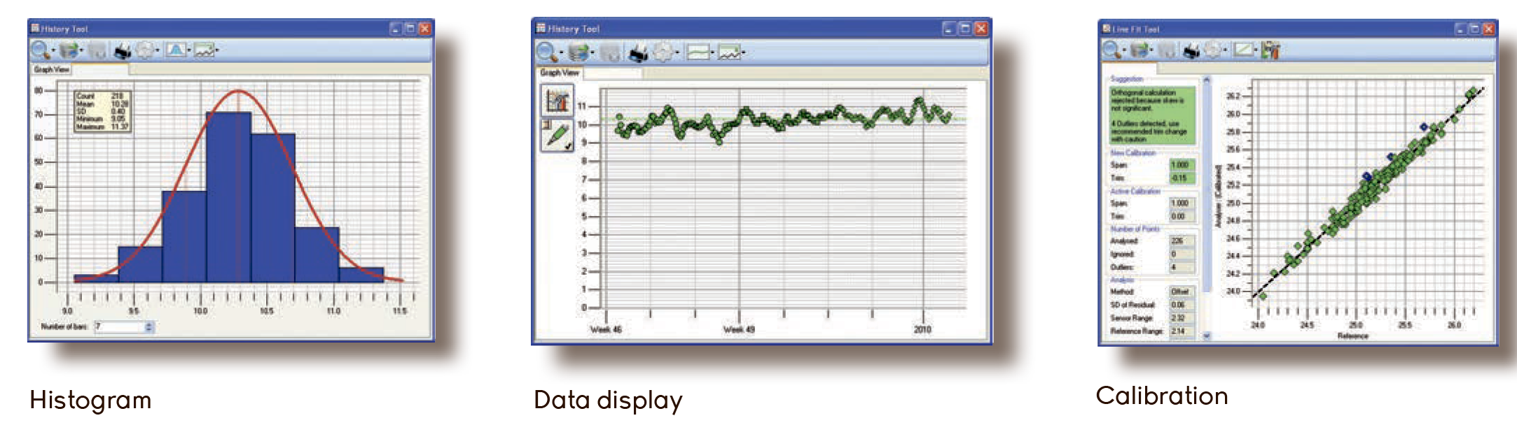 Softwaren forenkler denne proces ved at muliggøre sammenligning af instrumentværdier med laboratorieresultater og indeholder følgende værktøjer og funktioner: