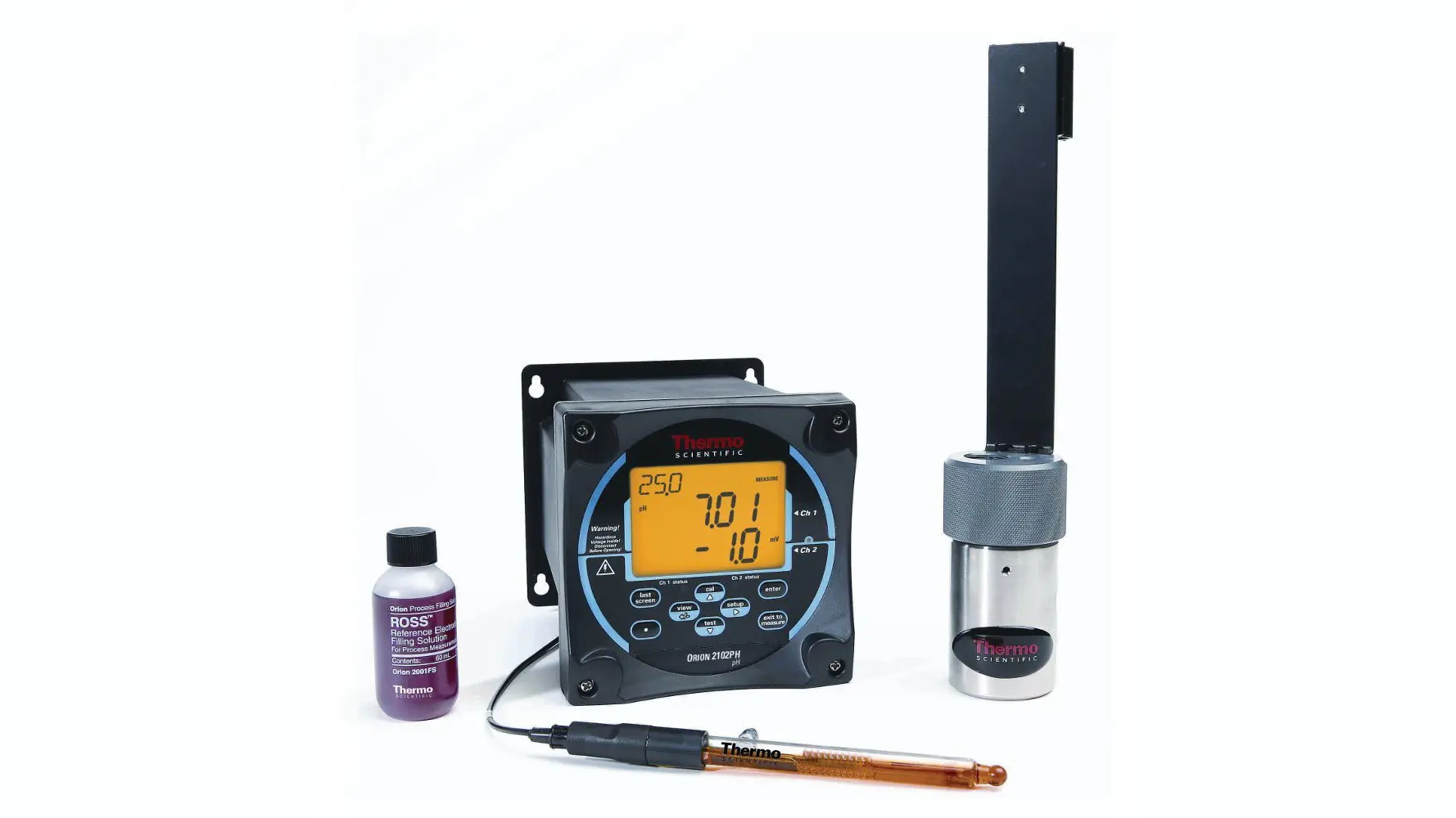 | 2102PH2SC | 2102PH dobbeltkanalstransmitter og ultrarent vand (UPW) pH-sæt, inkluderer (2) flowceller, (2) x 2001SC ROSS pH-elektroder, (2) x 5 meter elektrodekabler (2001SM), (2) x PT1000 ATC-prober (2001TM) og buffere (pH 4, 7 og 10) |