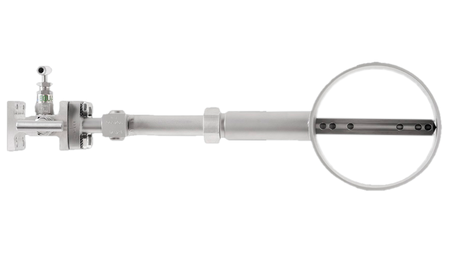 Det er også muligt at få det midlende Pitotrør monteret i et rørstykke (spool piece) med enten svejse eller flange tilslutning. Der kan også monteres op- og nedkoning i dette rørstykke, hvis flowhastigheden er for høj eller lav.