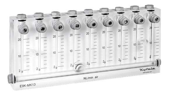 Variabelt areal flowmåler Model ExK er en højkvalitets akryl flerrørs flowmåler. Det er et pålideligt og letlæseligt instrument til måling og overvågning af væske- og gasstrømme. Den fås i enkeltrørs- og multirørsversioner med mange optioner. Model ExK er udstyret med flowjusteringsventiler på udløbet og fås også i tilpassede design. Typiske anvendelser er vand- og luftrensningsmålinger, afskærmende gasmålinger samt andre gas- og væskemålinger.