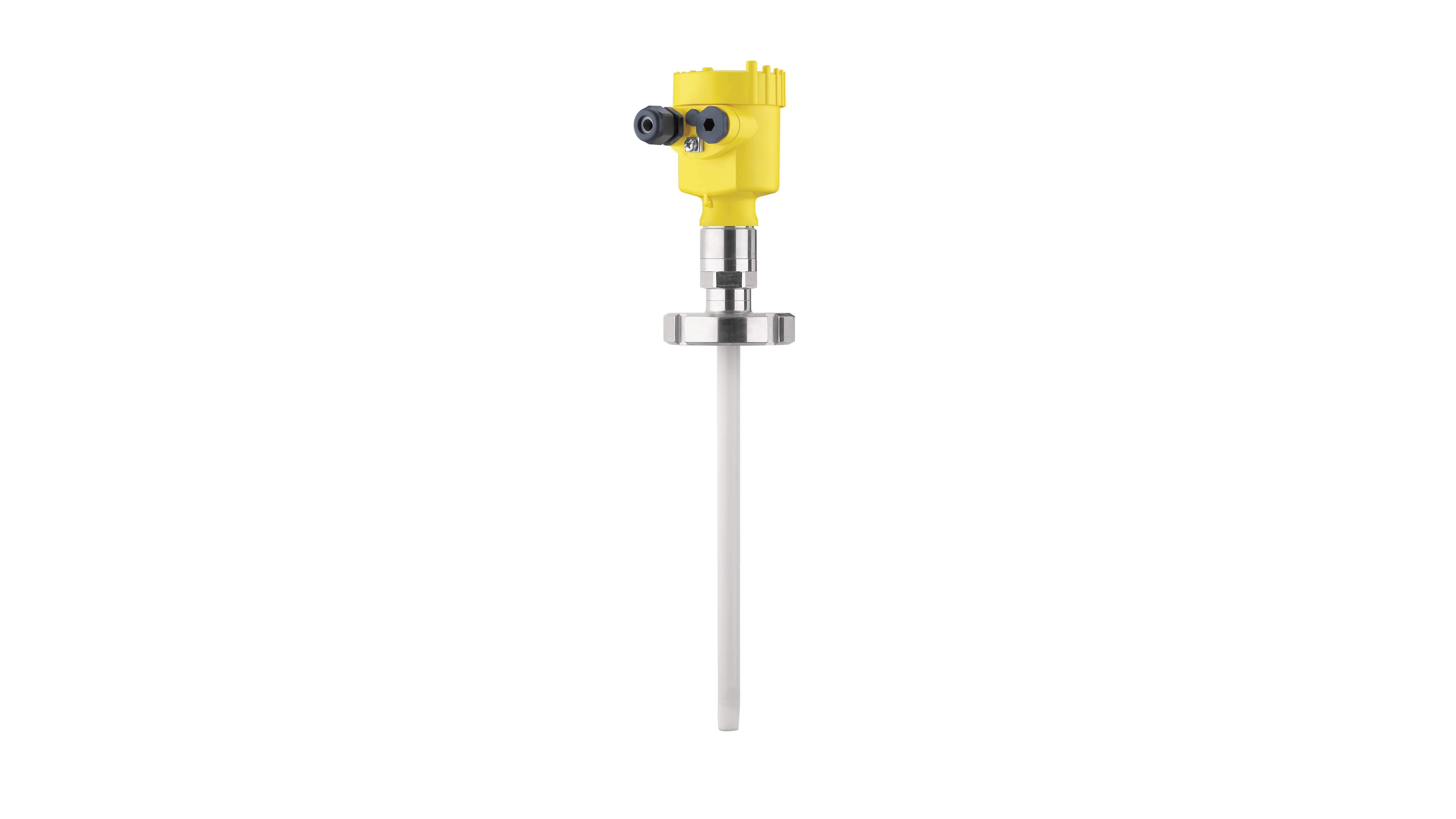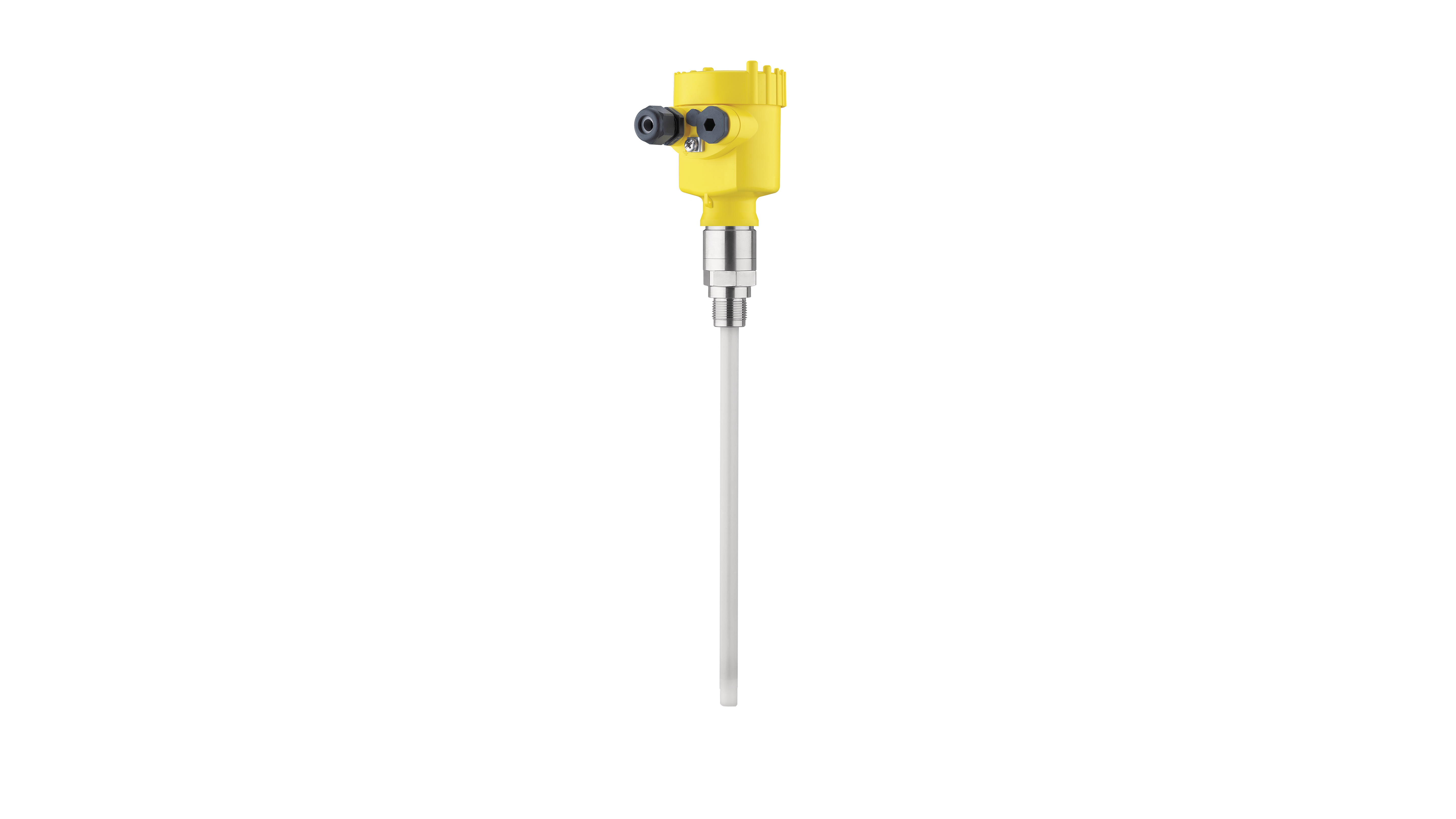 VEGACAP 63 er en fuldisoleret (PTFE el. PE) kapacitiv probe switch til niveau detektering. Anvendes hovedsageligt til ledende medier med en DK-værdi >5, som f.eks. vand, ethanol eller fugtigt sand. Den detekterer problemfrit i både væsker og tørstoffer. Har valgfri sensorlængde op til maximalt 6 meter.