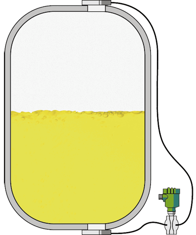 Er beholderen tryksat kan impulsrør til toppen af beholderen være tørt eller vådt, hvis der er mulighed for, at mediet kondenserer.