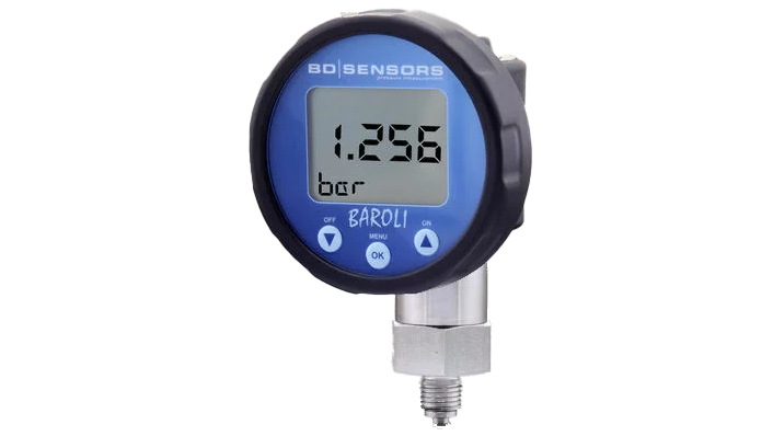 Den digitale trykindikator BAROLI 02 fra BD Sensors er med rustfri stålsensor og har en robust konstruktion med høj overtrykbeskyttelse. Velegnet til applikationer der kræver høj præcision og langvarig stabilitet.