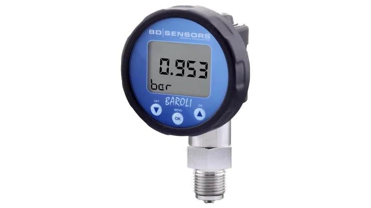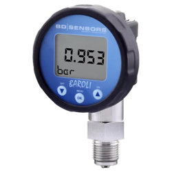 Den digitale trykindikator BAROLI 05 fra BD Sensors er med keramisk sensor og fås med forskellige mekaniske forbindelser inkl. tommer og NPT gevind. Velegnet til måling af tryk i væske, olie og gas.