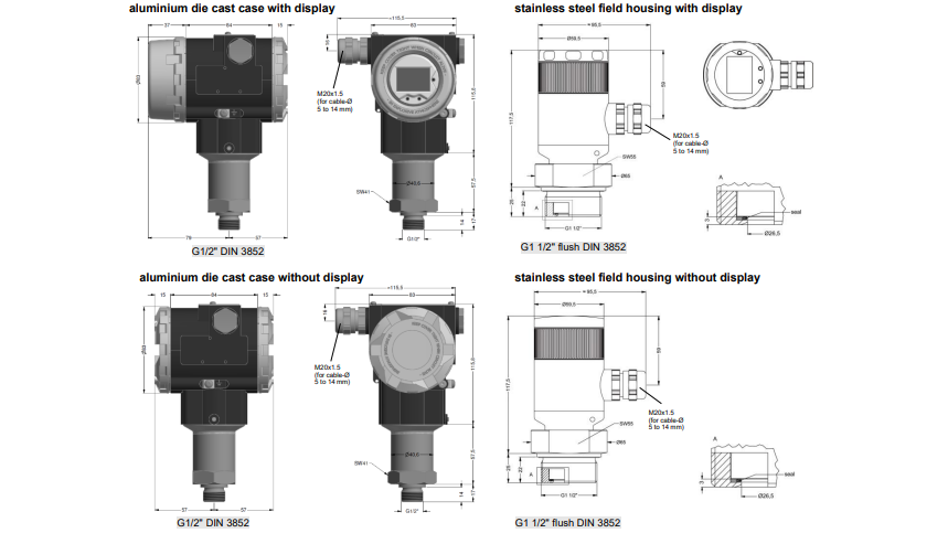 Desuden er transmitteren som standard udstyret med HART®-kommunikation. Dog kan du, som nævnt ovenfor, vælge enten et to-kammer aluminiumstrykstøbt kabinet eller et rustfrit felthus.