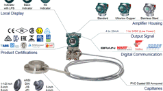 Anvendes til trykmåling ved væsker, gas og damp, kan endvidere bruges til applikationer hvor der skal måles væske-niveau og eller udføres densitetsberegninger.
