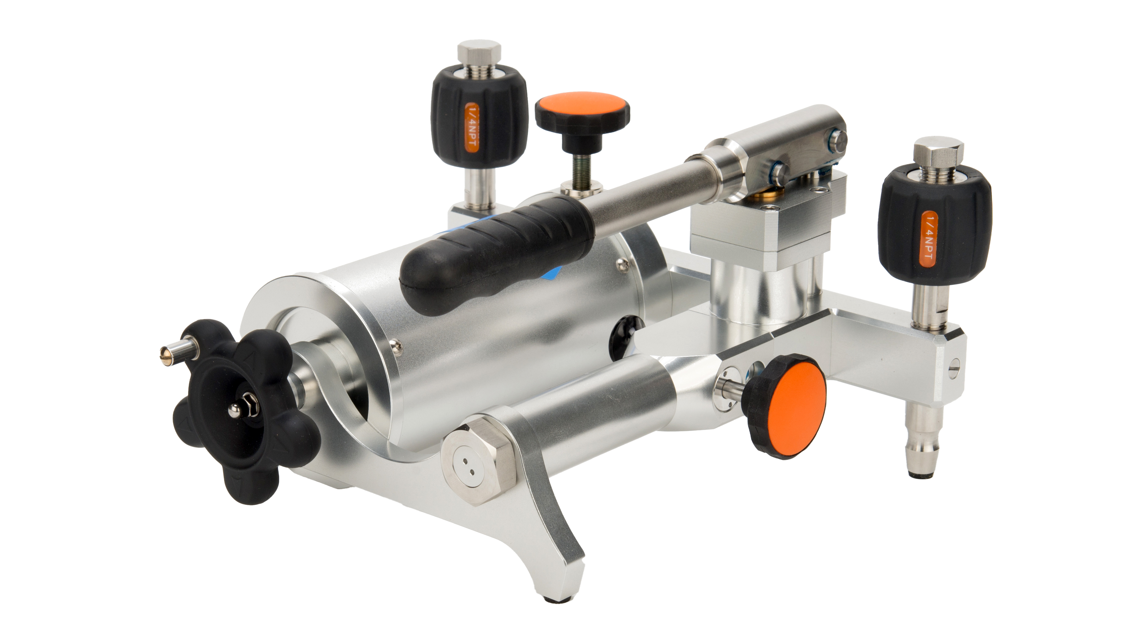 Additel ADT912A er en pneumatiske håndpumpe til trykkalibrering, der kan generere tryk fra 95 % vakuum...4 bar(g). Denne højkvalitets kombinations pumpe med stempel og skrue (variabel volumen) er designet og optimeret til præcisions finjustering helt ned til 0,001 mbar.