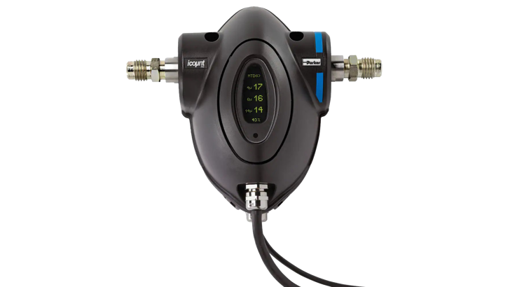 - Parker icountPD, en kompakt in-line partikelsensor, der muliggør kontinuerlig måling af hydraulikolie- og brændstofkvalitet. Fugtighedsmåler kan tilvælges.