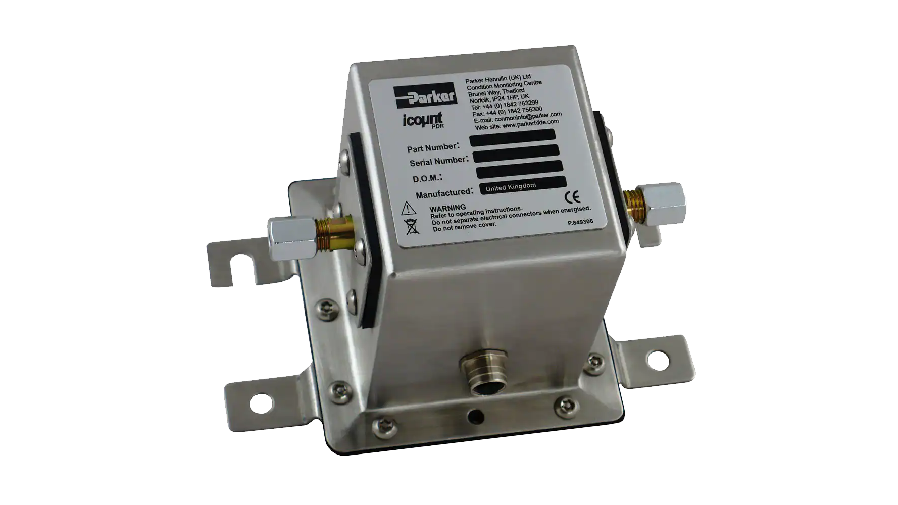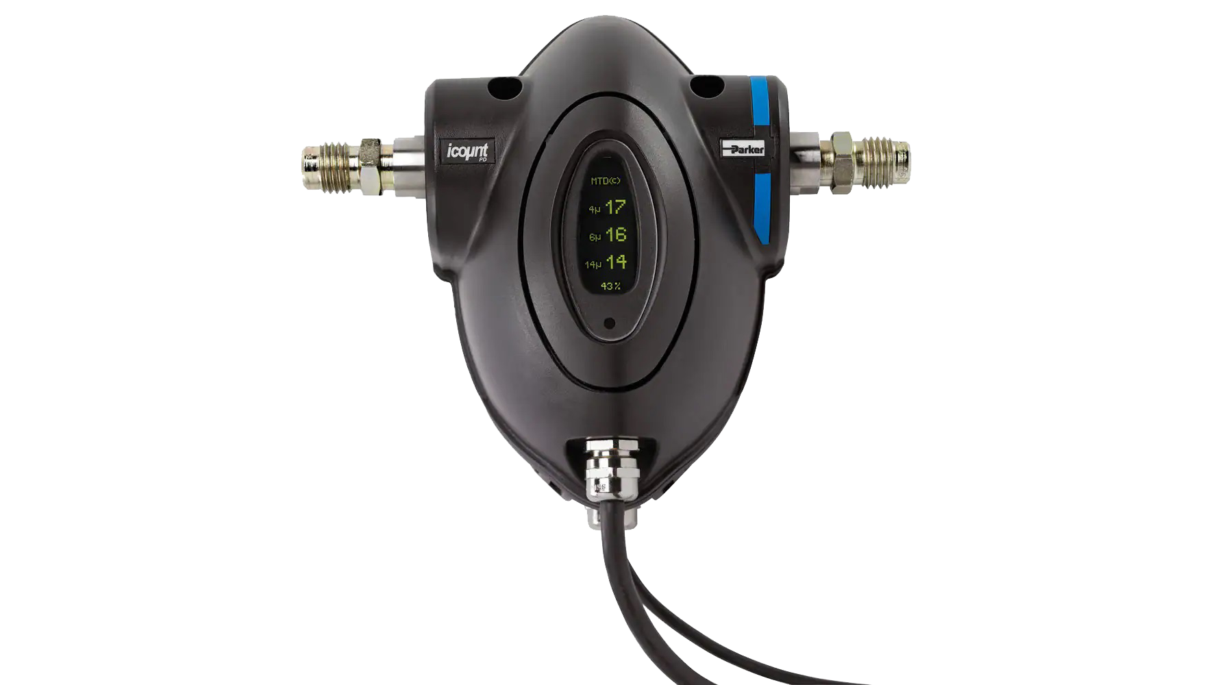 Parkers icountPD er en kompakt, In-line partikelsensor til kontinuerlig kvalitetsmåling af hydraulikolie og brændstof. Derudover kan du tilvælge en fugtighedsmåler.